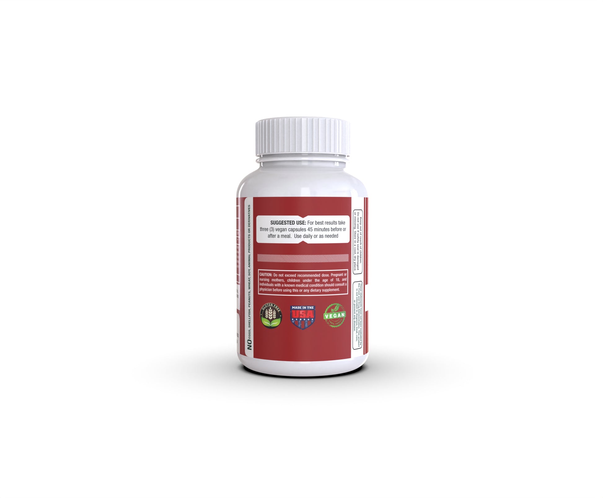 Processed according to CGMP standards with stainless steel encapsulation equipment. Quality assured. No chemical gel-packs or desiccants. No bleached cotton. No heat applied to bottles (external shrink band application). Bottles are sealed internally for protection. Labels are basic, black and white information and do not reflect images on the website.